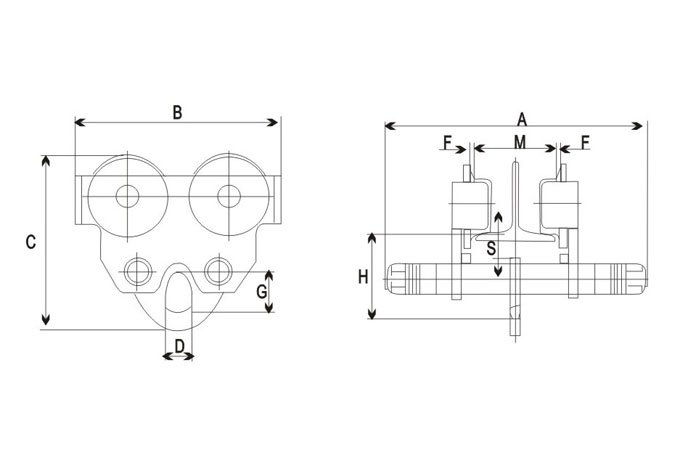 A série MPT-C carrinhos empurrado à mão são projetados para uso com a maioria dos guinchos. Antes da instalação, verificar que a estrutura de suporte é capaz de suportar o peso da carga, hospedeiro, e trole com segurança.