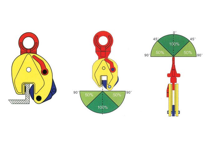- Para elevação e transporte de placas e estruturas de aço a partir de todas as posições (horizontal, vertical e de soslaio).